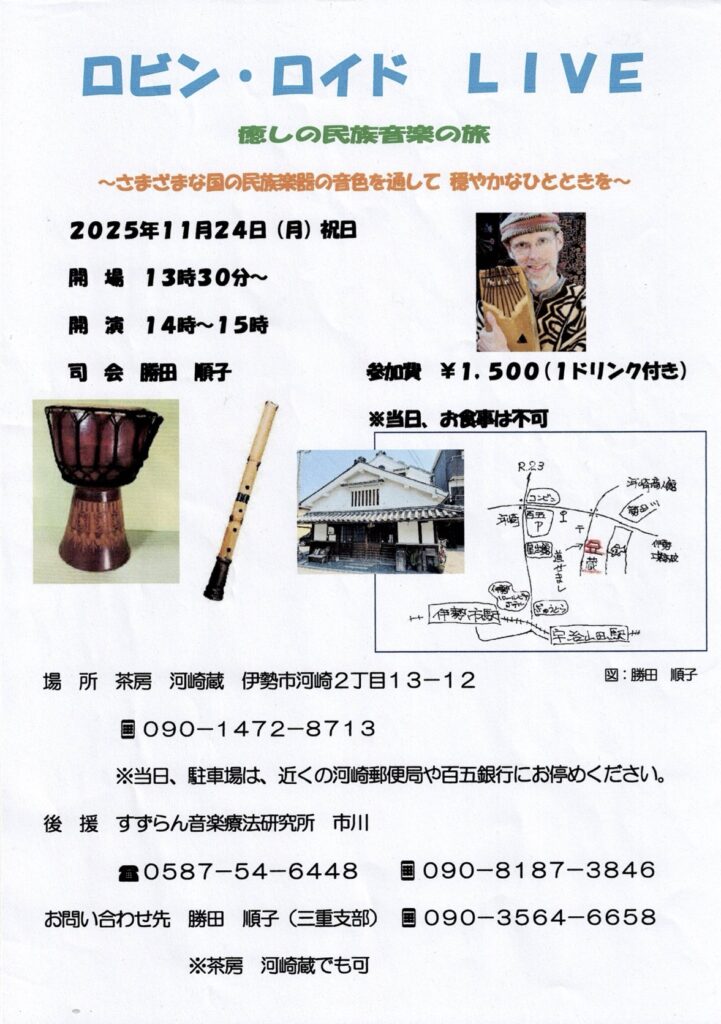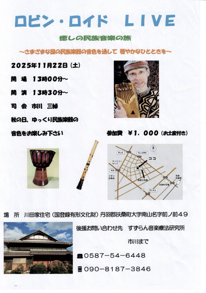 ロビンのソロ演奏 詳細は後日このHPでお知らせします